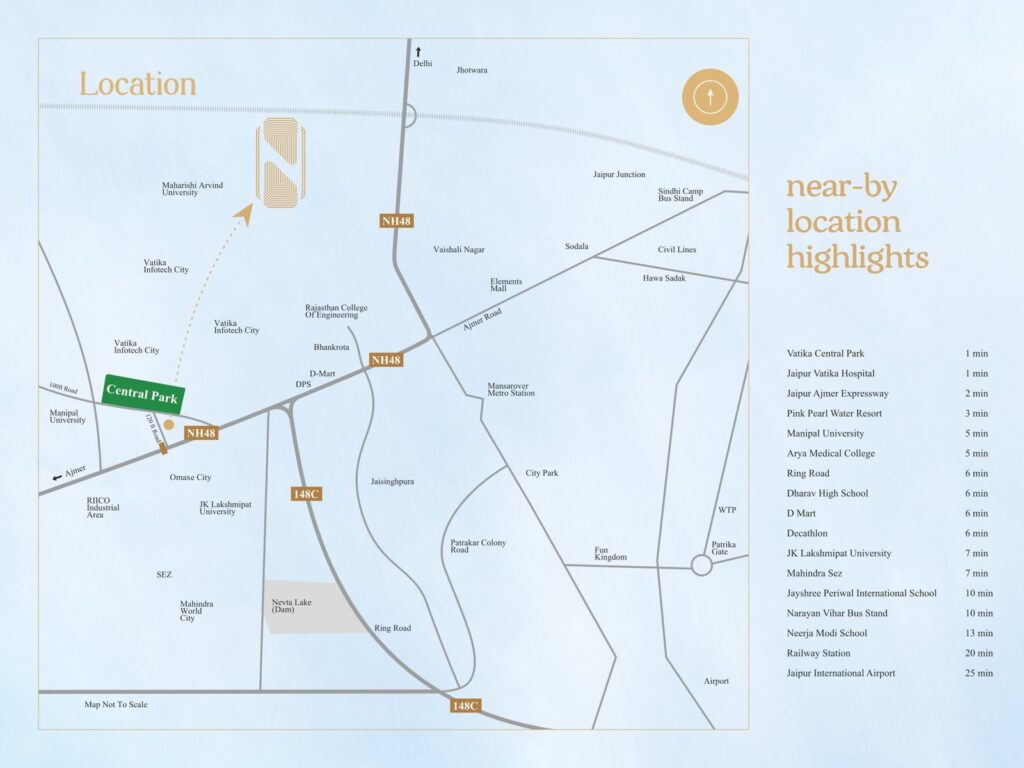 Nital Yojana को जयपुर के सबसे तेज़ी से विकसित हो रहे क्षेत्र Vatika Infotech City, Jaipur–Ajmer Expressway पर विकसित किया जा रहा है। परियोजना की लोकेशन अपने आप में इसकी सबसे बड़ी विशेषता है —