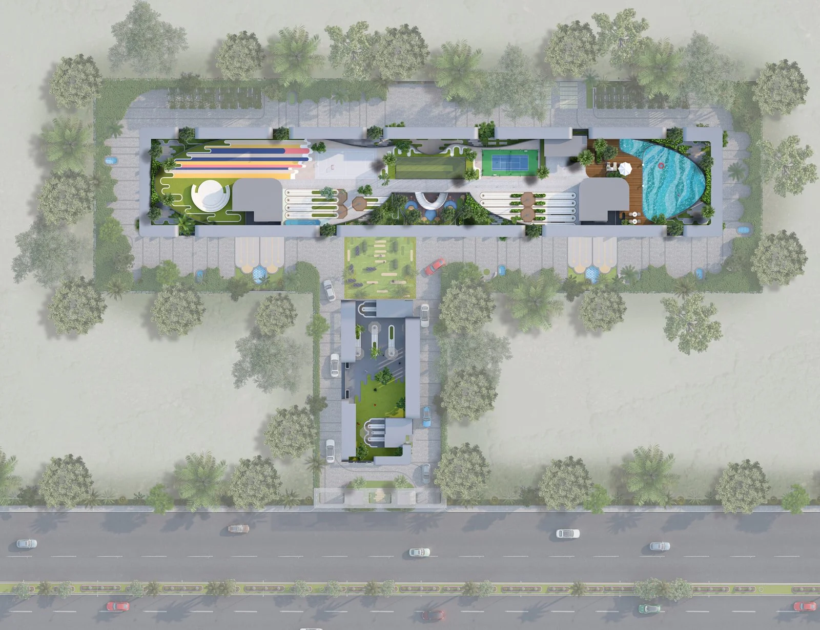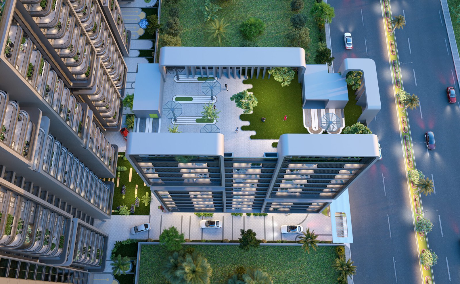 - Ground Floor: Multipurpose Hall with Lawn एवं Kids Play Area