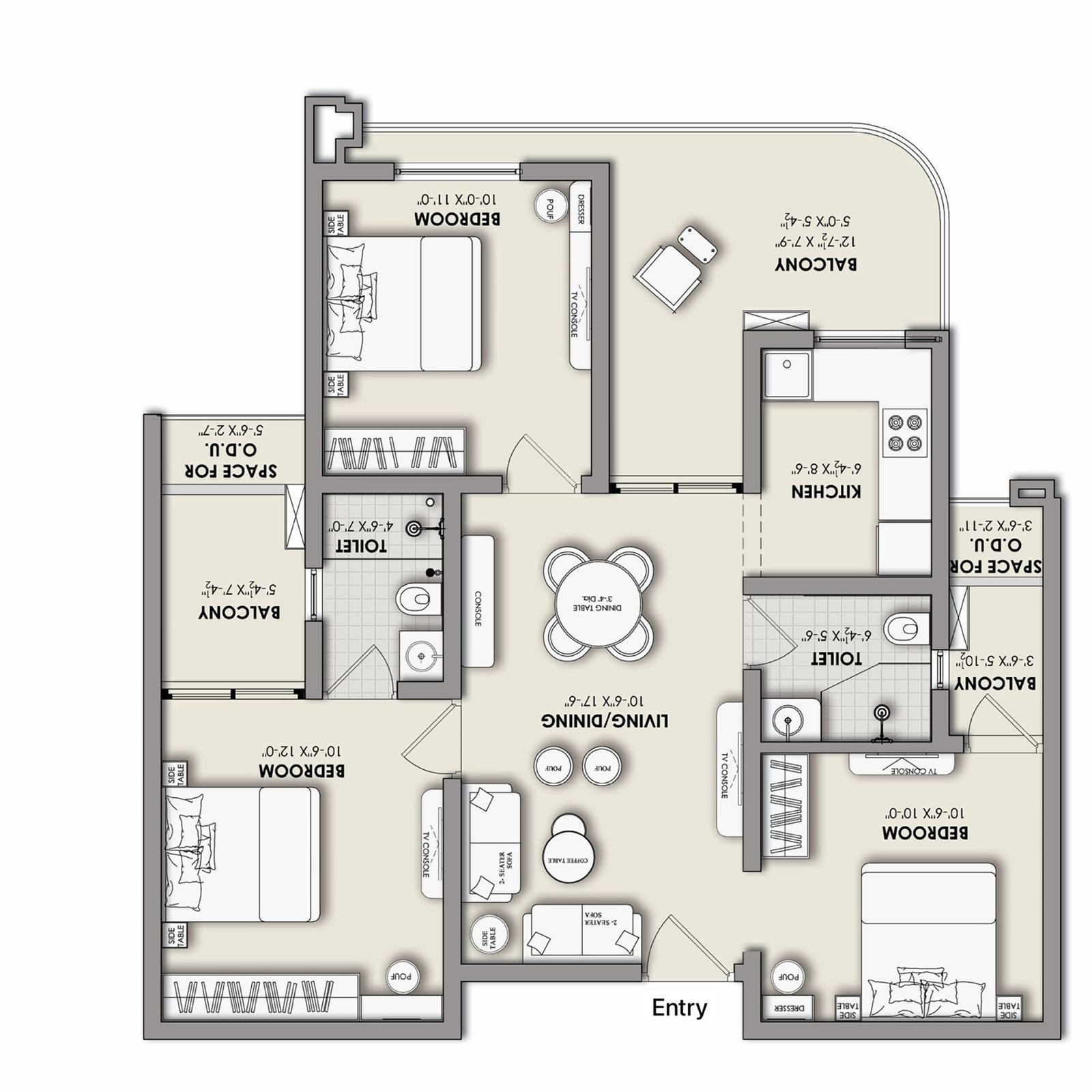 | 3 BHK | 1249.47 Sq.Ft. | ₹43,00,000* | ₹96,000 |